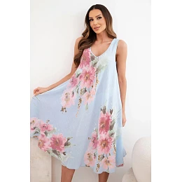 Model vyniká jemným výstřihem do tvaru V a efektním květinovým potiskem, který dodává celku romantický charakter. Je to vynikající volba pro ženy, které si cení módního vzhledu a pohodlí v jednom. Šaty se skvěle hodí jak k sandálům, tak k sportovní obuvi a vytvářejí stylizace pro různé příležitosti.