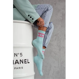 Dámské bavlněné ponožky Mon Chéri v modré barvě jsou pohodlným doplňkem pro každodenní nošení. Příjemný bavlněný úplet dobře sedí na noze a nápis Mon Chéri dodá outfitu jemně hravý, moderní detail. Modrý odstín se snadno kombinuje s džínovinou i neutrálními barvami, takže ponožky využijete do tenisek i městské obuvi.