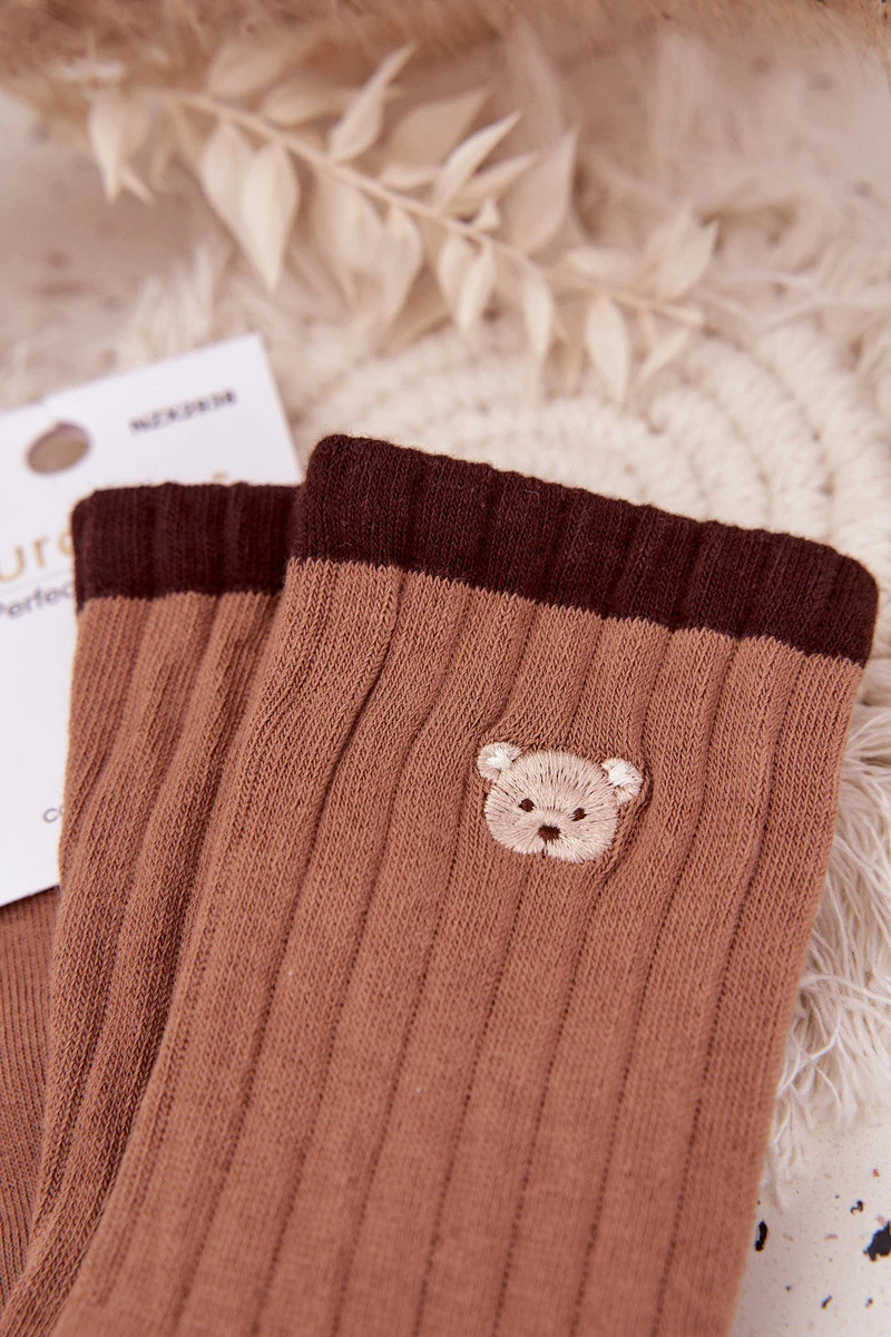 Dámské bavlněné ponožky s malým medvídkem – světle hnědé