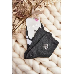Dámské bavlněné ponožky s potiskem Medvěd tmavě šedé