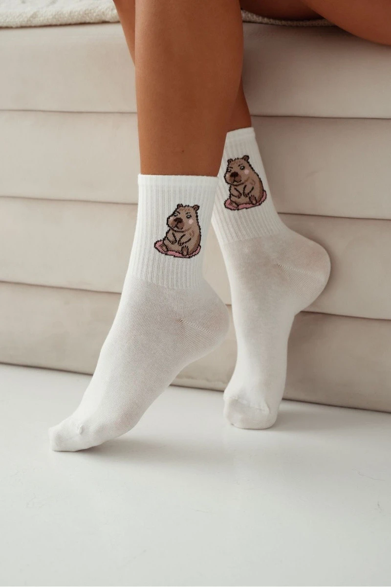 Dámské bavlněné ponožky Sedící kapibara ecru