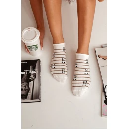 Dámské Bavlněné Ponožky Snížené Pandí A Pruhy Ecru