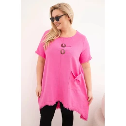 Dámské bavlněné šaty Plus Size s delším zadním dílem a kapsou růžová