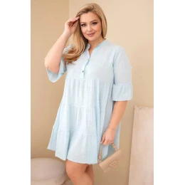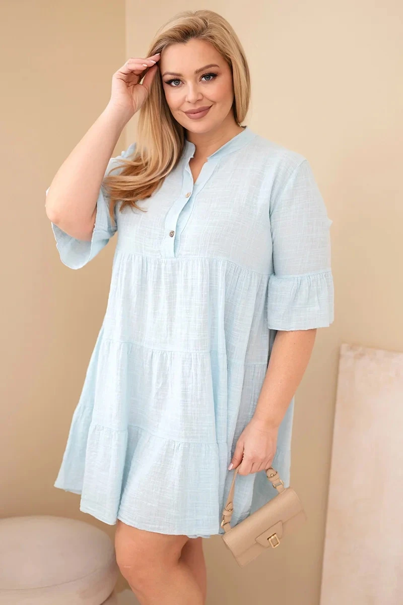 2. Dámské bavlněné šaty Plus Size s volány modré