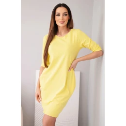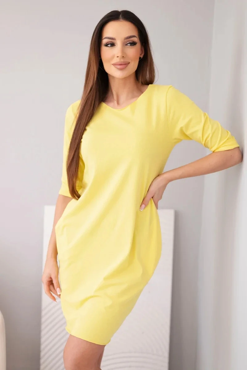 Dámské bavlněné šaty s 3/4 rukávem a kapsami žlutá