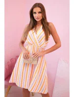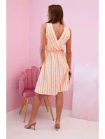 Dámské bavlněné šaty s barevnými pruhy v neonově oranžové barvě