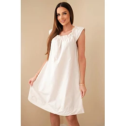 Lehké a mimořádně pohodlné dámské šaty vyrobené z přírodní bavlny jsou ideální volbou pro teplejší dny. Model vyniká jemným nařaseným výstřihem, který dodává celku něžný a ženský charakter. Krátké volné rukávy ve formě volánku dodávají lehkost a zajišťují, že šaty vypadají mimořádně stylově a uvolněně.