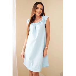 Dámské bavlněné šaty s nařaseným výstřihem a volánkem modrá