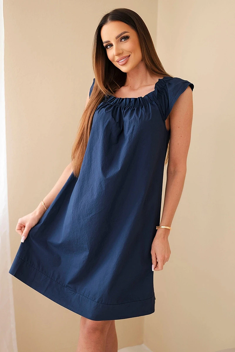 Dámské bavlněné šaty s řaseným výstřihem a volánkem námořnická modrá