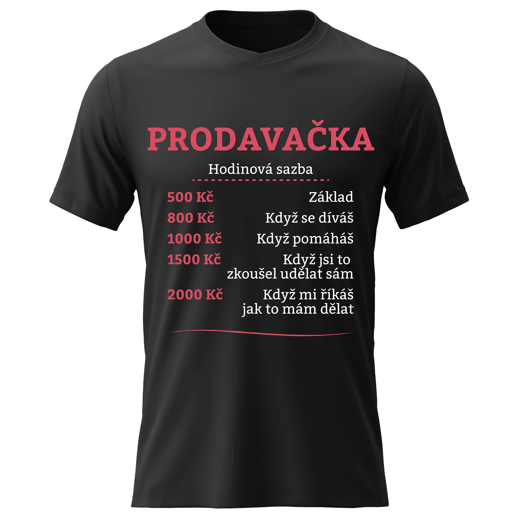 Vtipné tričko s potiskem HODINOVÁ SAZBA PRODAVAČKA – styl s nadhledem