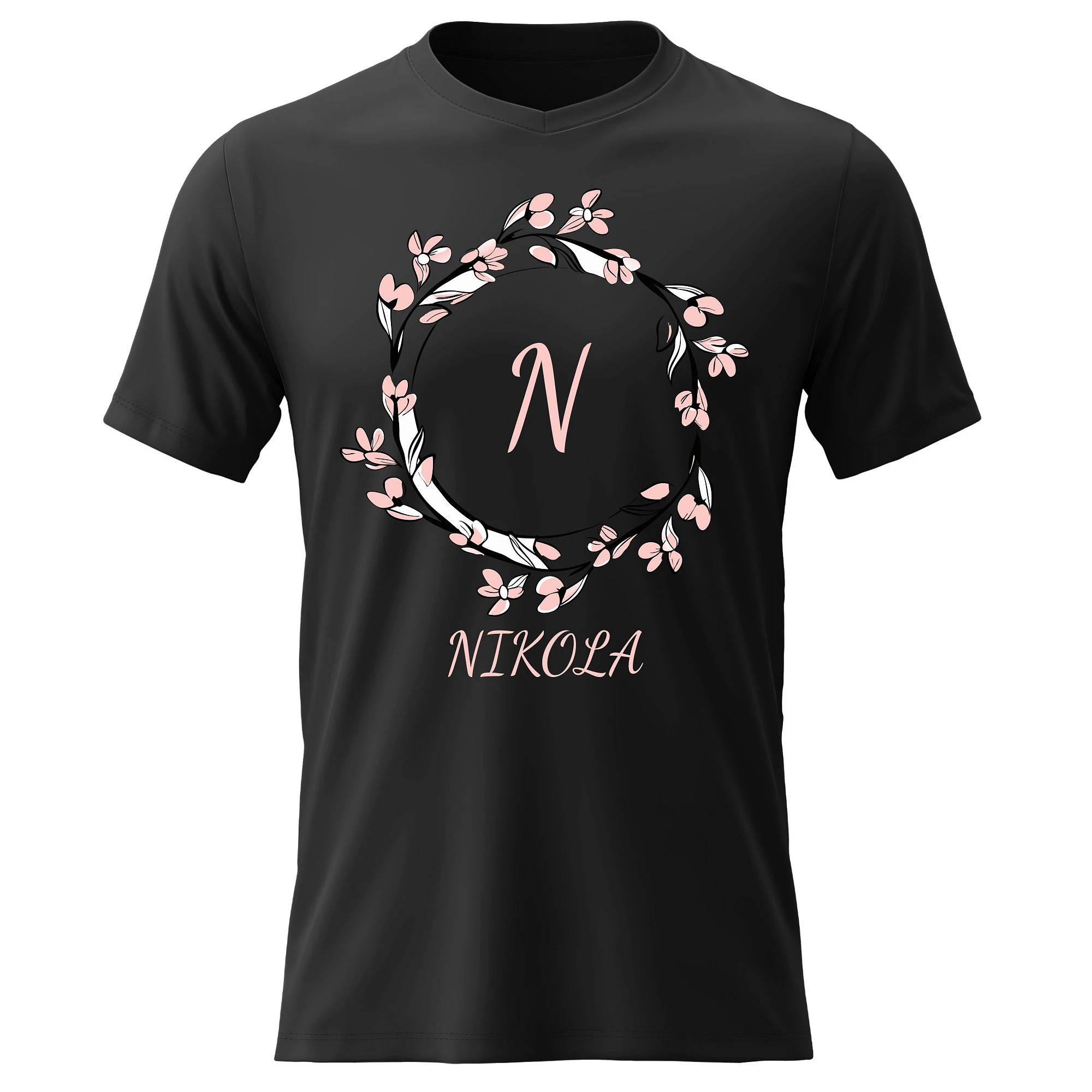 Dámské bavlněné tričko s potiskem - KVĚTINOVÝ MOTIV SE JMÉNEM - NIKOLA - černé