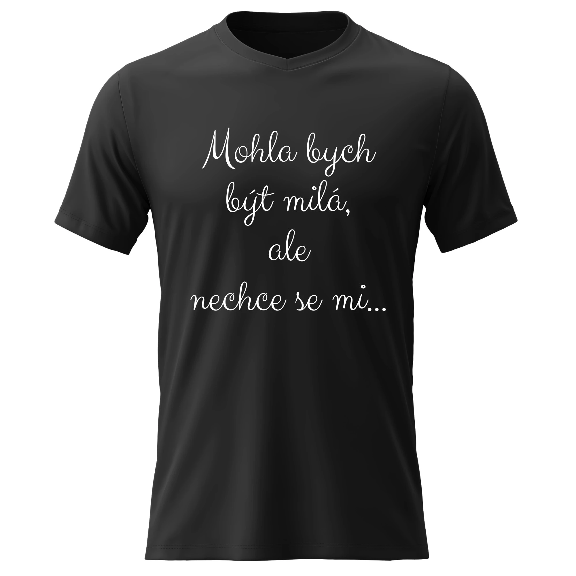 Dámské bavlněné tričko s potiskem - MOHLA BYCH BÝT MILÁ, ALE NECHCE SE MI - černé