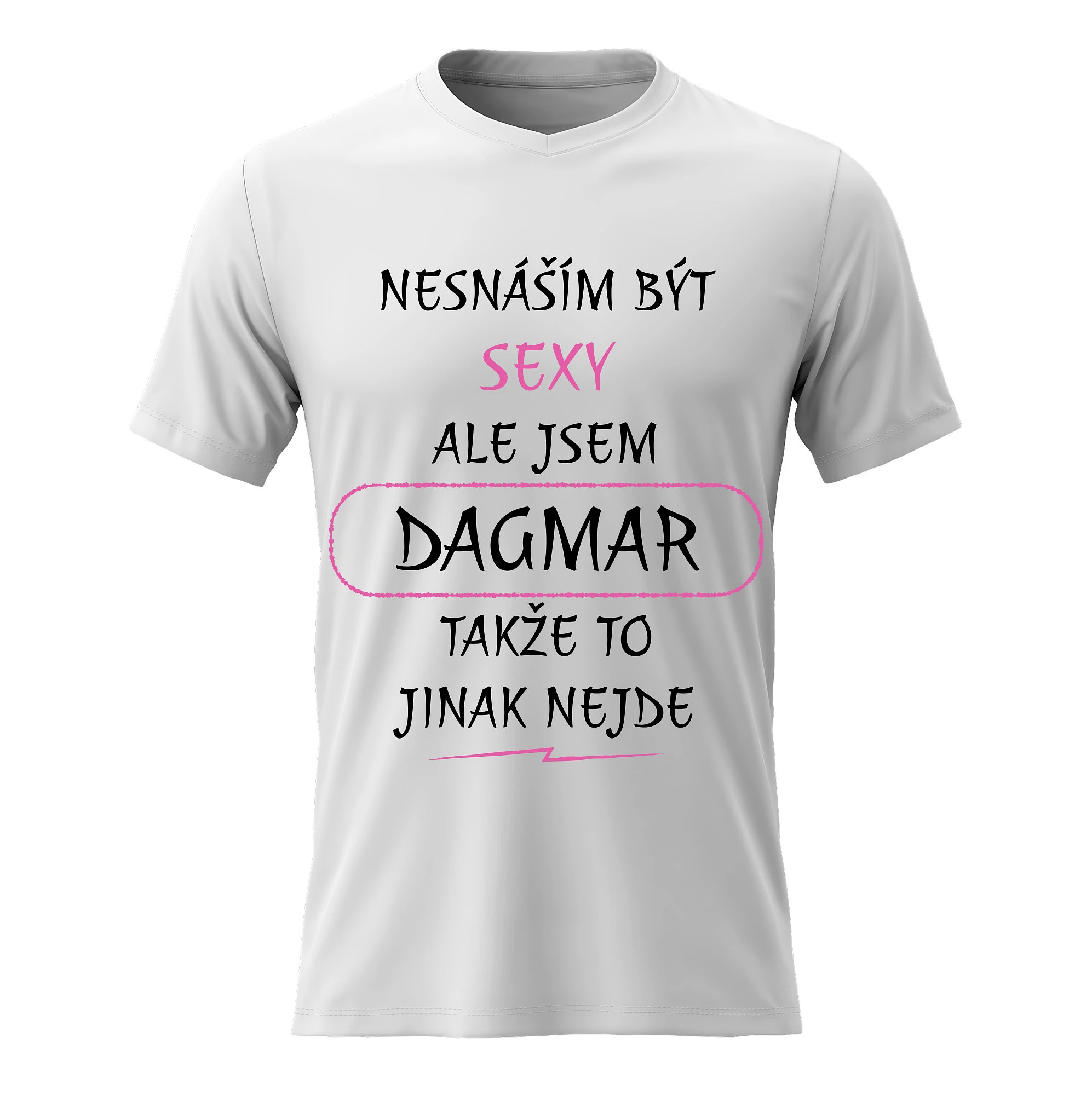 Vtipné tričko s potiskem NESNÁŠÍM BÝT SEXY, ALE JSEM DAGMAR – styl s nadhledem