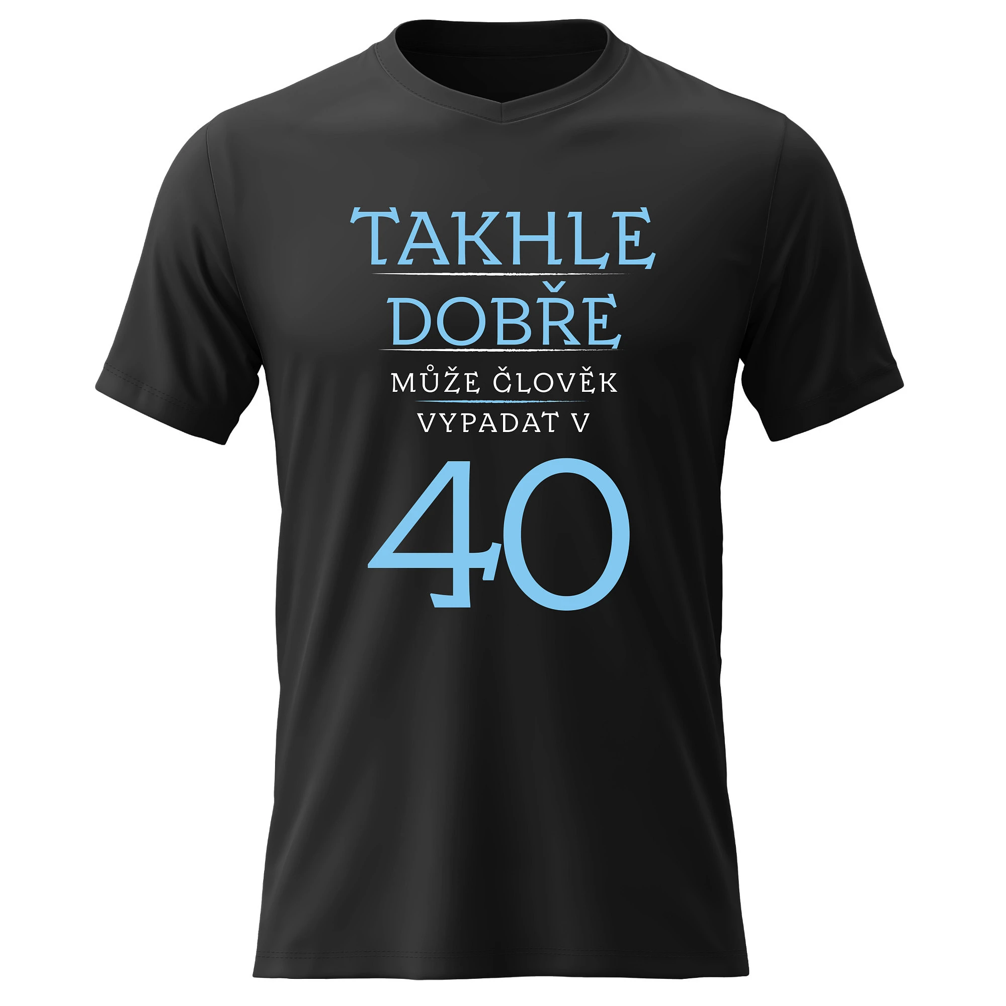 Vtipné tričko s potiskem TAKHLE DOBŘE MŮŽE ČLOVĚK VYPADAT VE 40 (MODRÁ) – styl s nadhledem
