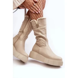 Dámské kozačky jsou vyrobeny z přírodní kůže. Tento model má zip na boční straně svršku. Vnitřek je zateplen přírodní vlnou. Podpatek je vyztužený. Boty byly nasazeny na masivní platformu a klíny. Na boku svršku mají ozdobný prvek. Tento model je ideální pro chladné zimní dny. Při výběru velikosti se řiďte tabulkou velikostí.