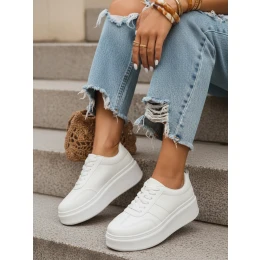Tyto dámské zvýšené tenisky kombinují sportovní styl s každodenním pohodlím. Silná platforma stabilizuje váš krok a přidává několik centimetrů výšky, aniž by zatěžovala nohu. Šněrování usnadňuje přizpůsobení nártu, zatímco měkký svršek podporuje pohodlí při delší chůzi.