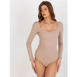 Béžové žebrované body basic s kulatým výstřihem .