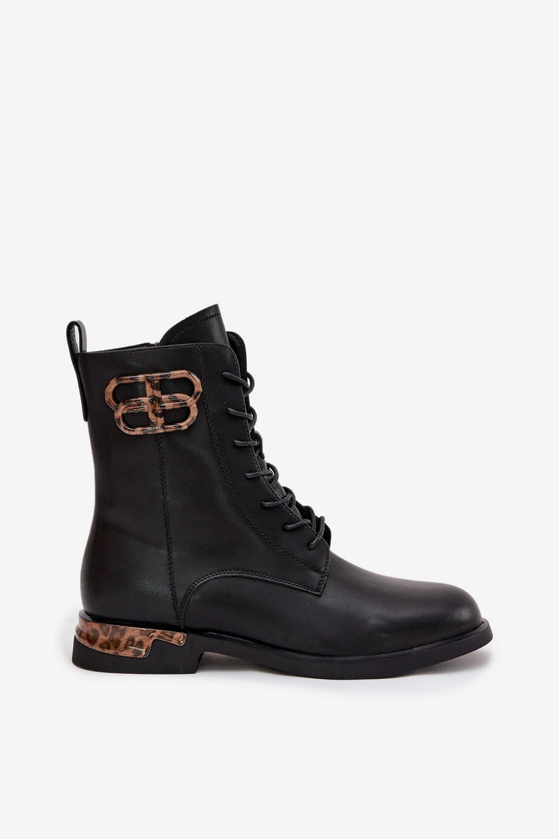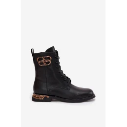 Dámské botky Artiker – černé, zateplené, s ozdobou, na nízkém podpatku