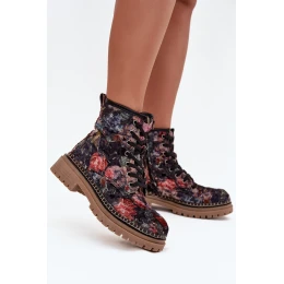 Cholevka s 3D květinovým vzorem, který dodává botám originální a ženský charakter.