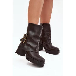 Dámské Botky Na Podpatku S Přezkami Čokoládové Marena