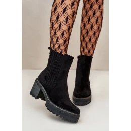 Dámské botky na podpatku z eko semiše zateplené černé Nevitas