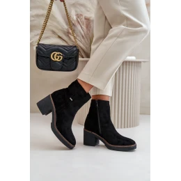 Dámské boty z eko semiše, který je měkký a příjemný na dotek. Jsou umístěny na stabilním sloupkovém podpatku, což zajišťuje pohodlí a jistotu při chůzi po celý den, zatímco přidává několik centimetrů na výšce a zdůrazňuje siluetu. Vnitřek je zateplený obuvnickou dekou, která zajišťuje teplo a komfort v chladnějších dnech, chránících nohy před zimou. Díky zipovému uzávěru je jejich obouvání a svlékání rychlé a bezproblémové, což je velká výhoda při každodenním nošení. Při výběru velikosti se řiďte tabulkou velikostí.