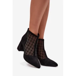 Stylové dámské botky D&A jsou vyrobeny z ekologické kůže a kombinují pohodlí s módním designem. Model je osazen středně vysokým sloupkovým podpatkem, který zajišťuje stabilitu a komfort při chůzi. Originálním prvkem je prodyšná síťka po stranách, která dodává botám lehkost a moderní vzhled. Botky se zapínají zipem na boku, což usnadňuje obouvání a přizpůsobení noze. Zaoblená špička doplňuje elegantní a nadčasový styl, vhodný pro každodenní nošení i společenské příležitosti.