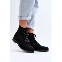 Dámské boty vyrobené z ekologického semiše. Vykrajovaný svršek zdobený květinami. Umístěné na plochém podpatku. Zapínání na zip z boku a navíc mají šněrování, což umožní lepší přizpůsobení. Zaoblené špičky. Tento model navíc disponuje zesílenou patou. Určitě si také prohlédněte další modely botů dostupné v naší nabídce! Při výběru velikosti se řiďte tabulkou velikostí.
