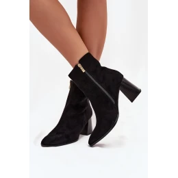 Dámské Botky Z Eko Semiše Na Podpatku Se Zipem Černé Zelita
