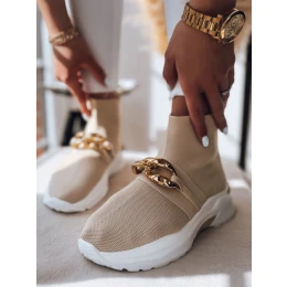 Model z měkkého materiálu na gumové podrážce je fantastickým doplňkem k mnoha každodenním outfitům. Nepochybně budou prezentovat módní vzhled a zároveň poskytnou komfort a pohodlí v každé situaci. Ozdobným prvkem je zlatý řetízek, který botám dodává charakter. Navrhněte svou velikost - standardní velikost.