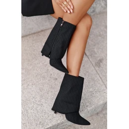 Stylové kozačky s volnou cholebou až do poloviny lýtka. Osazené na podpatku ve tvaru sloupu. Vnitřek je zateplen kožešinou. Tento model má cholebu překrývající koturnu, což odlišuje toto obuv od ostatních kozaček. Špička je zpevněná. Při výběru velikosti se řiďte tabulkou velikostí.