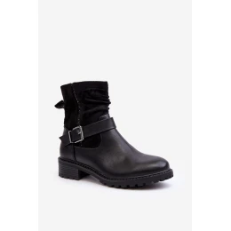 Boty dámské s manžetou s kotníkem. Vyrobeno z kombinace ekologické kůže a eko semišu. Osazené na plochém, stabilním podpatku. Špička zaoblená. Špička zesílená. Upevněno na zip. Manžeta ozdobena malými kamínky a páskem s klipsou. Vyhřívané syntetickou výplní uvnitř. Určitě byste měli tento model mít ve svém šatníku! Při výběru velikosti se řiďte tabulkou velikostí.