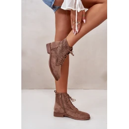 Dámské boty vyrobené z ekologického semiše. Vykrajovaný svršek zdobený květinami. Umístěné na plochém podpatku. Zapínání na zip z boku a navíc mají šněrování, což umožní lepší přizpůsobení. Zaoblené špičky. Tento model navíc disponuje zesílenou patou. Určitě si také prohlédněte další modely botů dostupné v naší nabídce! Při výběru velikosti se řiďte tabulkou velikostí.
