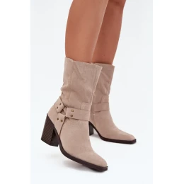Dámské boty zateplené na podpatku s pásky a ozdobným detailem béžové Neria