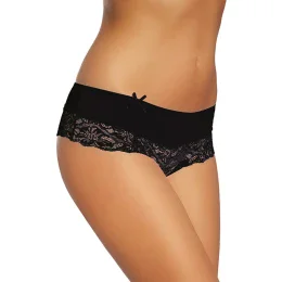 Dámské boxerky 096 black Gabidar - černá barva - jsou zdobené jemnou krajkou s květovaným vzorem - sed je zesílený látkou - svůdný a romantický design - na horním lemu mašlička