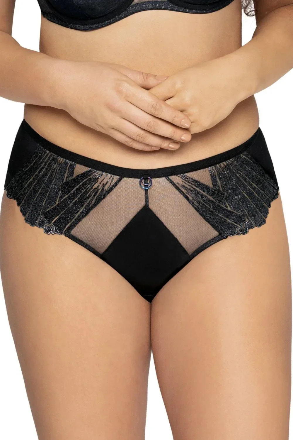 Dámské brazilky 1950/b Glam rock AVA - černá barva - z hladkého mikrovlákna - přední část zdobená lesklou výšivkou - zadní část z dvojitého tylu