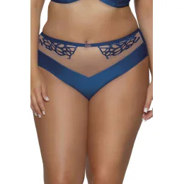 Dámské brazilky 2057 Monarch cobalt AVA - modrá barva - přední část zdobená výšivkou - zadní část z dvojité tylu