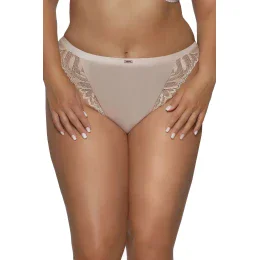 Dámské brazilky 2106/b Yasemin beige AVA - béžová barva - z hladkého mikrovlákna - zdobené krajkou a jemnou síťovinou - zadní část zakončená krajkou