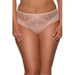 Dámské brazilky 2109/b Puella beige AVA - béžová barva - z jemné krajky a síťoviny - zadní část zdobená krajkou
