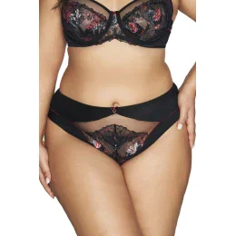 Dámské brazilky 2122 Intense AVA - černá barva - z hladkého elastického materiálu - kombinace transparentního tylu s barevnou výšivkou - na přední části je ozdobená jemnou bižuterií - ozdobné červené švy na bocích - na zadní části je ozdobná aplikace ve tvaru trojúhelníku
