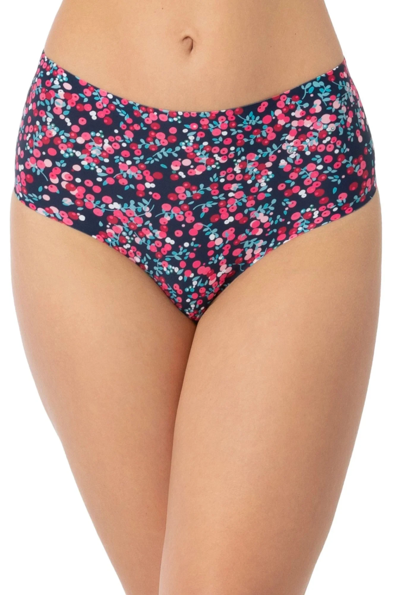 Dámské brazilky Cranberries brasil maxi JULIMEX - tmavě modrá barva - z vysoce jakostní tkaniny - se vzorem - vyšší pas - širší boky - technologie INVISIBLE LINE na ultratenké okraje - řezané laserem - neviditelné pod oblečením