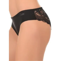 Dámské brazilky italské značky LEILIEVE. Kalhotky brazilkového střihu působí velmi luxusně. Přední část je řezaná laserem, zadní část tvoří elastická jemná krajka. Brazilky se řadí mezi „ neviditelné“, jsou vhodné pod přiléhavé oblečení. Přední část je zcela hladká s logem výrobce na pravém boku. Zadní část je z elastické velmi ozdobné krajky, která Vám dokonale obepne zadeček, v pase s pružnou gumičkou. Uprostřed je všitý bavlněný klínek pro pohodlné nošení. Kalhotky jsou extra prodyšné, velmi tenké a rychleschnoucí.