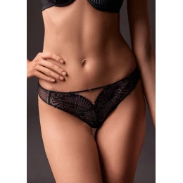 Dámské brazilky Lormar v elegantním černém provedení zaujmou jemnou průsvitnou krajkou s výraznou výšivkou na předním díle a lehkým puntíkovým tylem po stranách. Střih je pohodlný a ženský, dokonale přiléhá k tělu a poskytuje příjemné nošení po celý den. Zadní část je hladká a měkce obepíná, aniž by vytvářela nežádoucí otlaky. Stylový a svůdný doplněk k podprsence ze stejné kolekce.