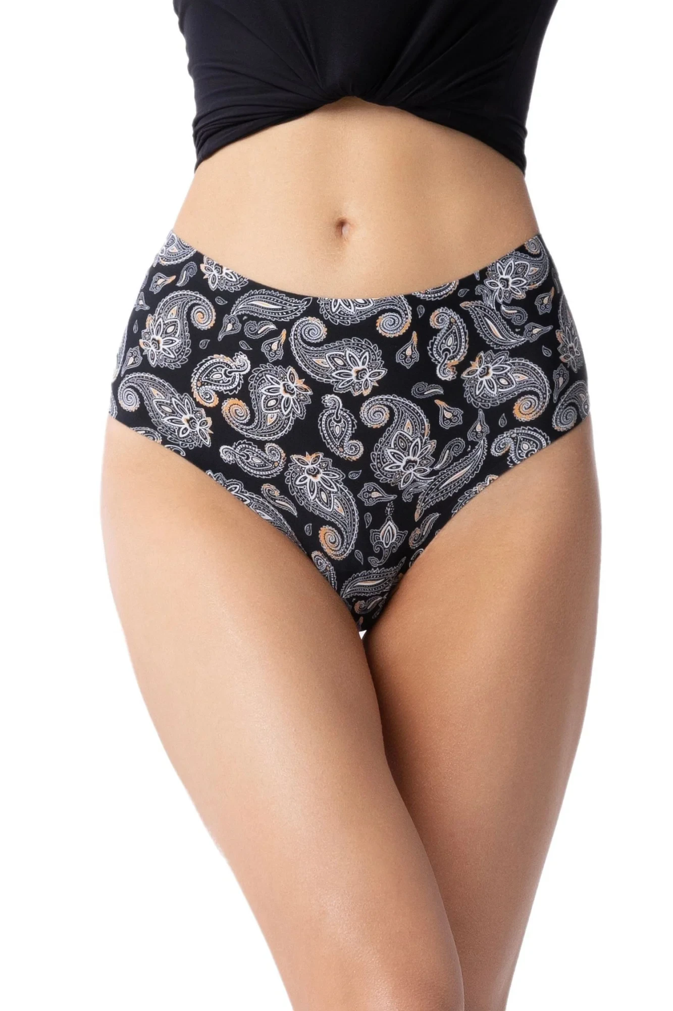 Dámské brazilky Paisley maxi JULIMEX - černá barva - z vysoce jakostní tkaniny - se vzorem - vyšší pas - širší boky - technologie INVISIBLE LINE na ultratenké okraje - řezané laserem - neviditelné pod oblečením