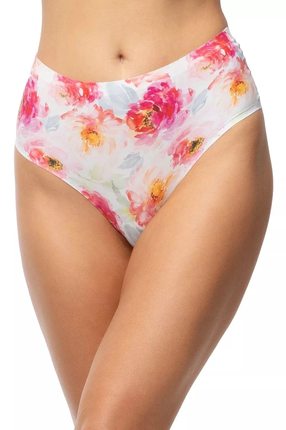 Dámské brazilky Peony brasil maxi JULIMEX - bílá barva - z vysoce jakostní tkaniny - se vzorem - vyšší pas - širší boky - technologie INVISIBLE LINE na ultratenké okraje - řezané laserem - neviditelné pod oblečením