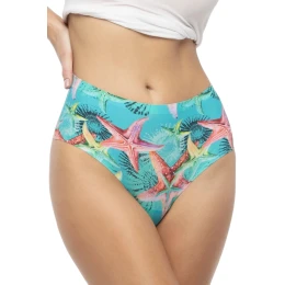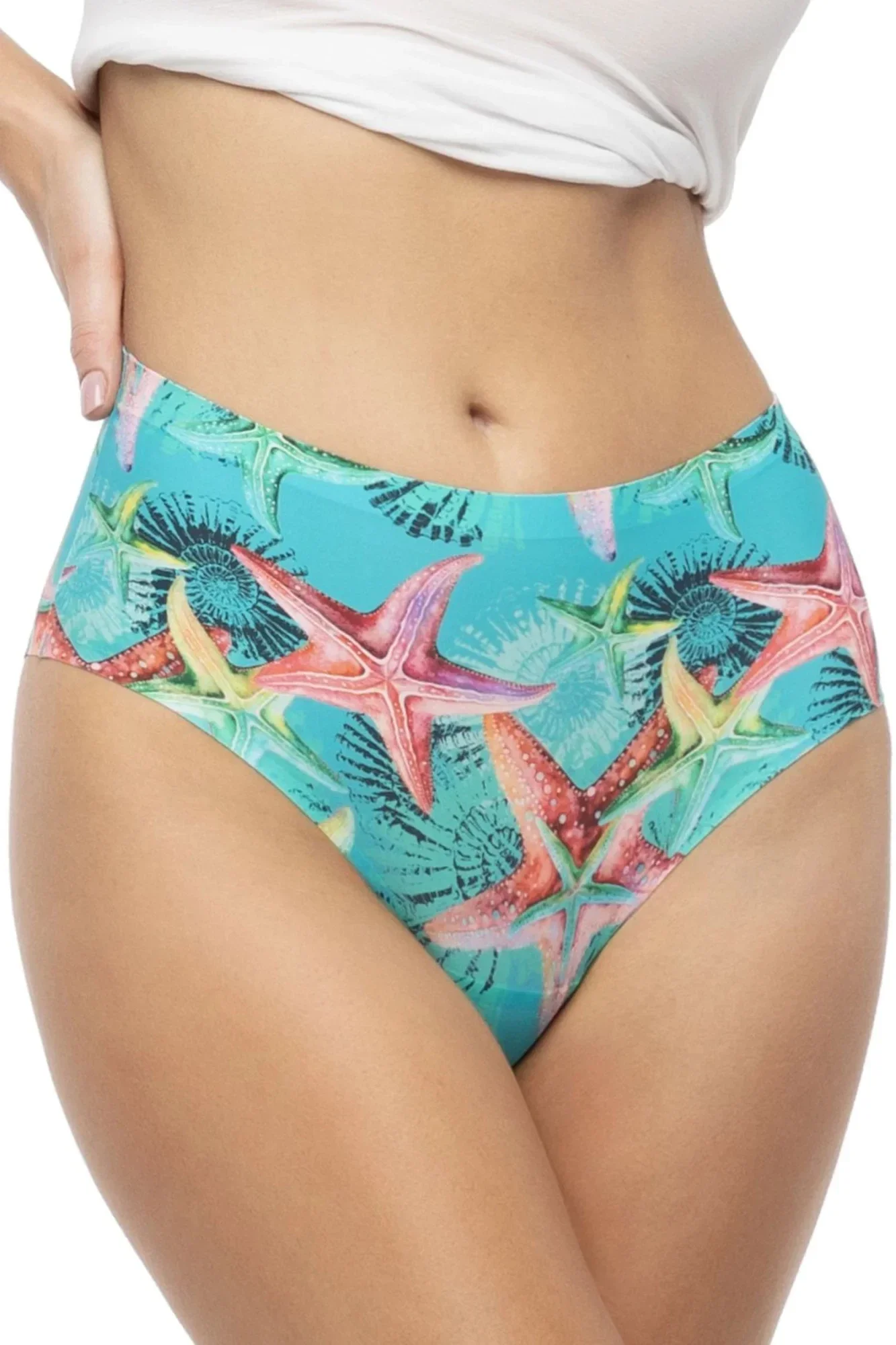 Dámské brazilky Sea stars brasil maxi JULIMEX - tyrkysová barva - z vysoce jakostní tkaniny - se vzorem - vyšší pas - technologie INVISIBLE LINE na ultratenké okraje - řezané laserem - neviditelné pod oblečením