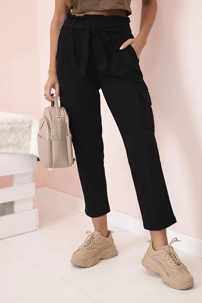 Tyto stylové dámské kalhoty s vysokým pasem spojují pohodlí a městský styl. Vyrobené z elastické bavlny, skvěle se přizpůsobí postavě a poskytují komfort po celý den. Mají praktické cargo kapsy po stranách, které nejen dodávají charakter, ale jsou i velmi funkční. Další výhodou je látkový pásek na zavazování v pase, který krásně zvýrazňuje ženskou postavu. Model je ideální na každý den – do práce, školy nebo na nákupy. Jejich univerzální střih a klasický styl umožňují snadné kombinování jak se sportovní mikinou, tak s elegantní košilí. Jsou must-have v šatníku každé ženy, která si cení stylu a pohodlí. Velikost je univerzální a vhodná pro ženy ve velikostech S, M nebo L.