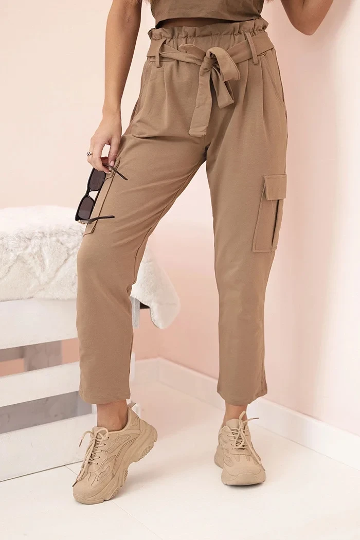 Dámské cargo kalhoty s vysokým pasem velbloud