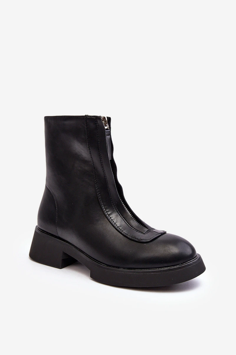 Pohodlné dámské boty na ploché podrážce jsou skvělou obuví na každý den. Vyrobené z ekologické kůže. Zapínání na praktický zip vpředu. Špička zaoblená. Tento model bude skvělým doplňkem vašeho šatníku! Při výběru velikosti se řiďte tabulkou velikostí.