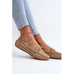 Dámské mokasíny s ažurovým vzorem vyrobené z ekologického semiše. Vsazené na podrážce z pryžového materiálu. Zaoblené špičky. Tento model má měkkou kůží stélku, která zajistí pohodlí během nošení. Určitě budou skvěle vypadat v mnoha stylizacích! Při výběru velikosti se řiďte tabulkou velikostí.